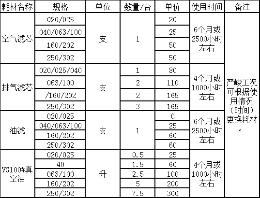保養(yǎng)更換配件時(shí)間表