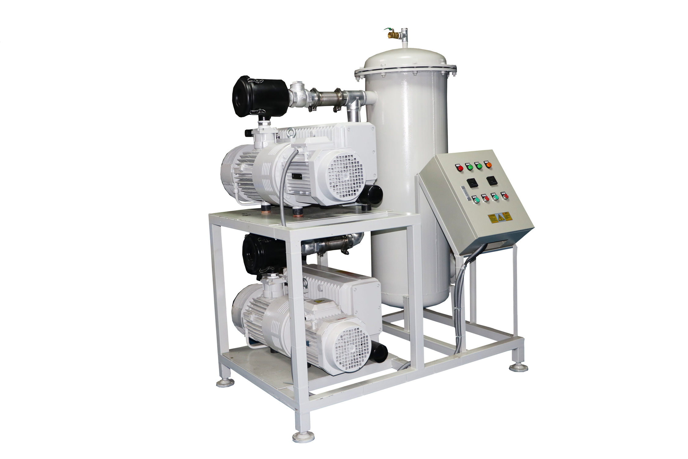 移動(dòng)式真空負(fù)壓站一般包含真空緩沖罐、真空泵、控制制箱、冷卻卻器、真空附件、真空度報(bào)警系統(tǒng);該系列負(fù)壓站包含兩種類型,即開放式真空負(fù)壓站和封閉式真空負(fù)壓站,客戶使用環(huán)境良好,操作簡(jiǎn)單,成本要求嚴(yán)格,則可做開放式真空負(fù)壓站;客戶使用環(huán)境惡劣,有大量粉塵,可凝性氣體,腐蝕性氣體等環(huán)境,則做成封閉式。